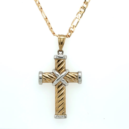 9ct Two-Tone Gold Cable Twist Cross Pendant