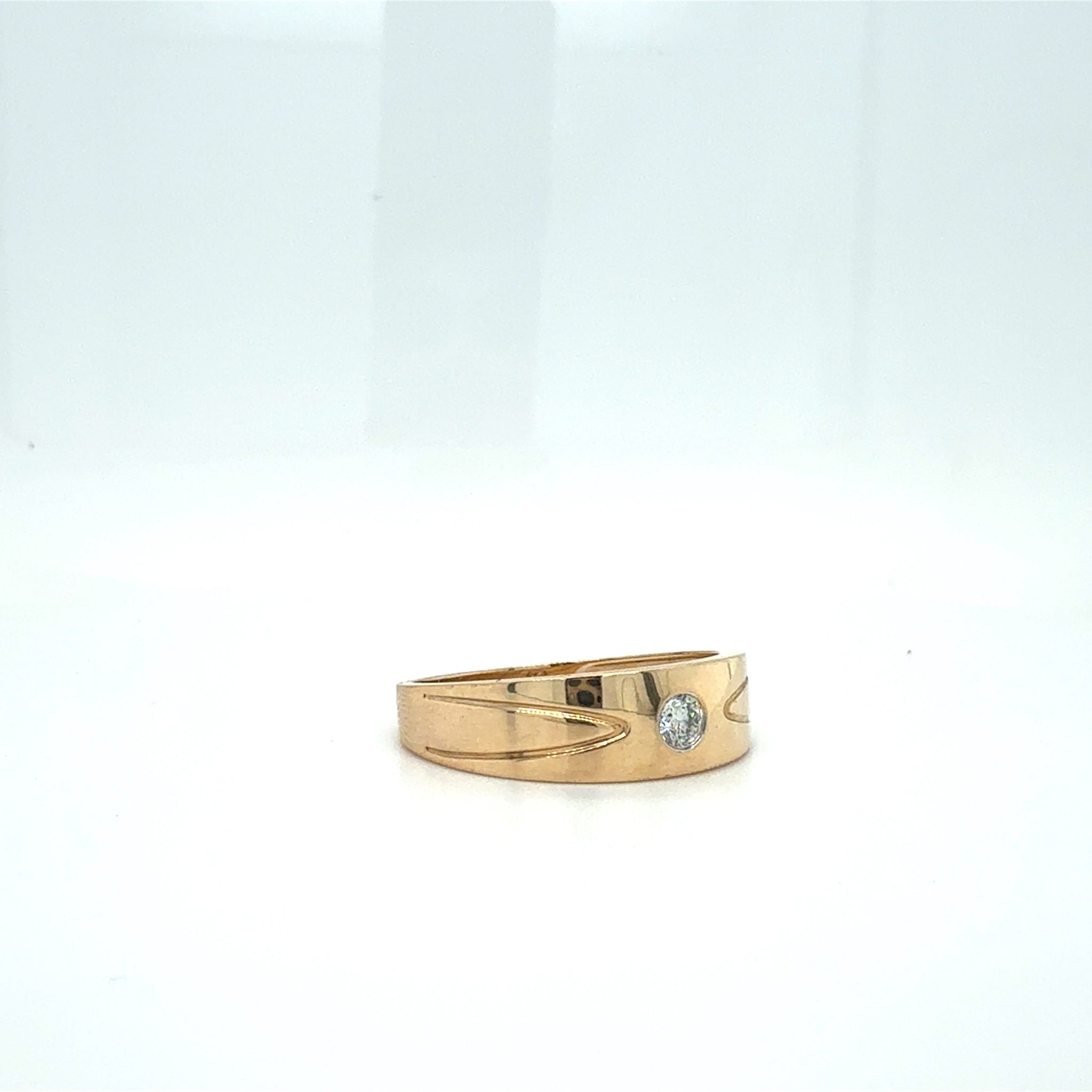 Features: Flush setting, polished finish, and side groove detailing
